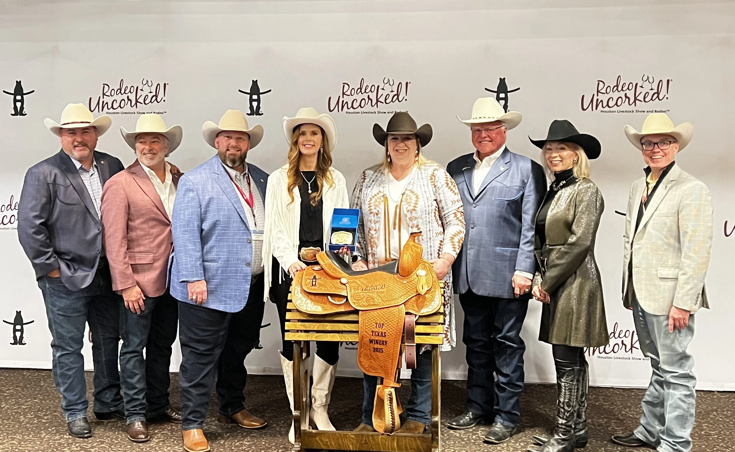 Kiepersol has won the "Top Texas Winery" award at the Rodeo Uncorked! International Wine Competition. This is a part of the prestigious Houston Livestock Show & Rodeo International Wine Competition with 2,876 entries from 20 countries. 558 entries came from Texas alone. The honor includes being awarded a custom saddle with the wording “Top Texas Winery 2025” hand-tooled into the leather flaps.